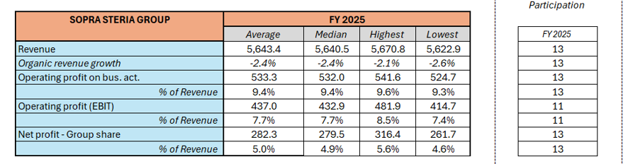 The computation is done on the basis of the data collected from the financial analysts covering Sopra Steria stock (list available on Sopra Steria website).